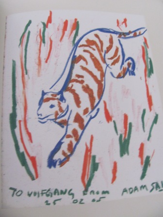 Das glaube ich sofort! Mit Markus Lüpertz und Günther Uecker sind hier auch prominente Beiträger zu nennen; ich habe aber nicht auf Namen geachtet, sondern zwei meiner Lieblingsbilder ausgewählt. Jedenfalls ist es toll, wenn man solche Gäste hat 🙂 Umgekehrt bin ich froh, nicht auf Besuch versuchen zu müssen, etwas zu zeichnen…