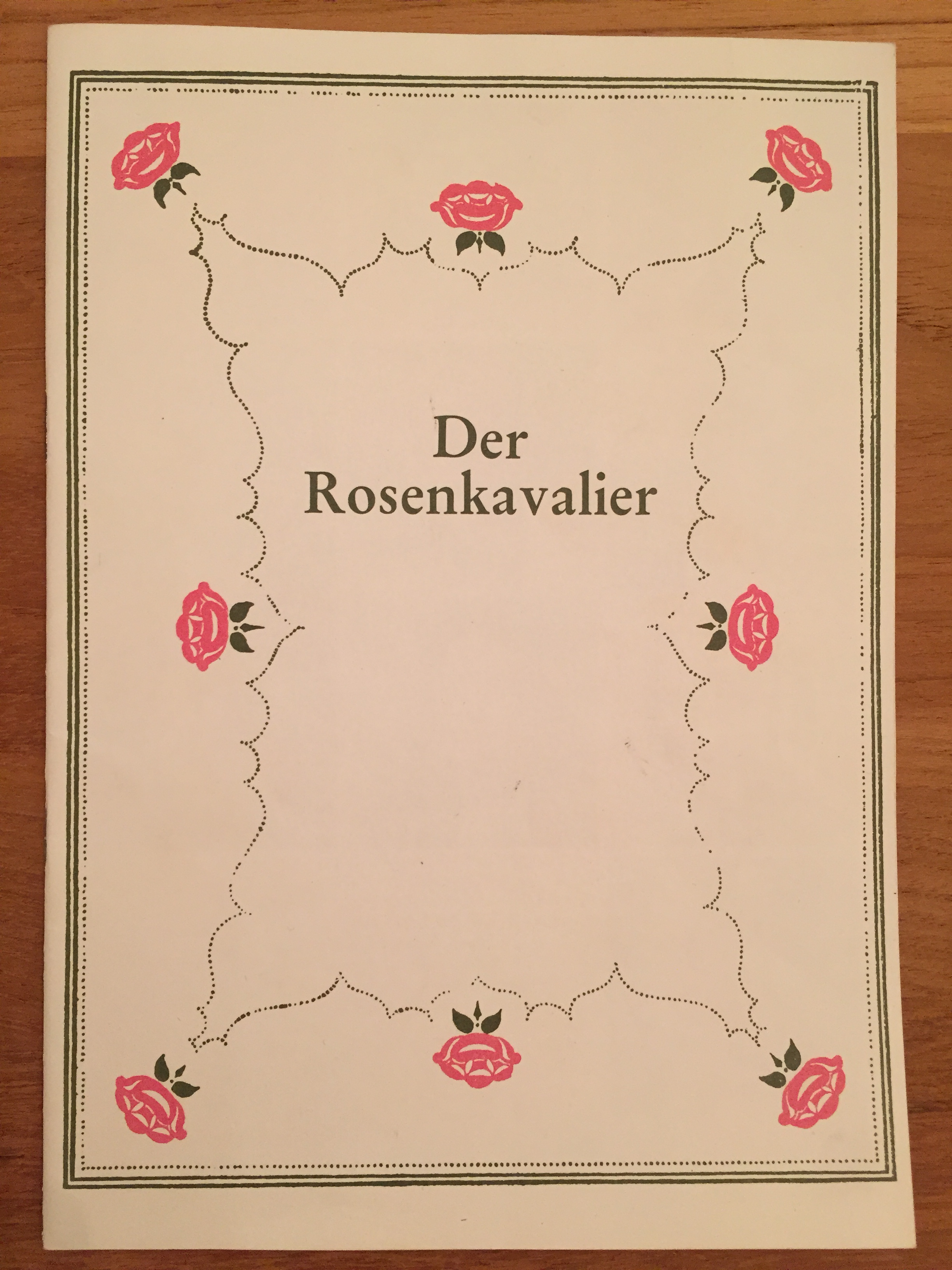 Erhalten ist das Programmheft des Rosenkavalier, Premiere (!), Dirigent Hans-Werner Pintgen, Inszenierung Heinz Peters. Marschallin Ingrid Kremling, Octavian die junge Gail Gilmore, Sophie Elaine Cormany, Ochs Wolfgang Babl, Faninal Erwin Kurtz – damals und für manches weitere Jahr prägende Namen. Auf der U2 (nicht immer aktuelle) Fotos der Sänger, dann Texte von Strauss und Hofmannsthal, Textauszüge aus älteren Programmheften (Wiesbaden und Deutsche Oper am Rhein), aber kein Wort zur aktuellen Inszenierung, kein Foto, sondern thematisch passende Reproduktionen von Zeichnungen (Himmelbett, Toilettenszene).