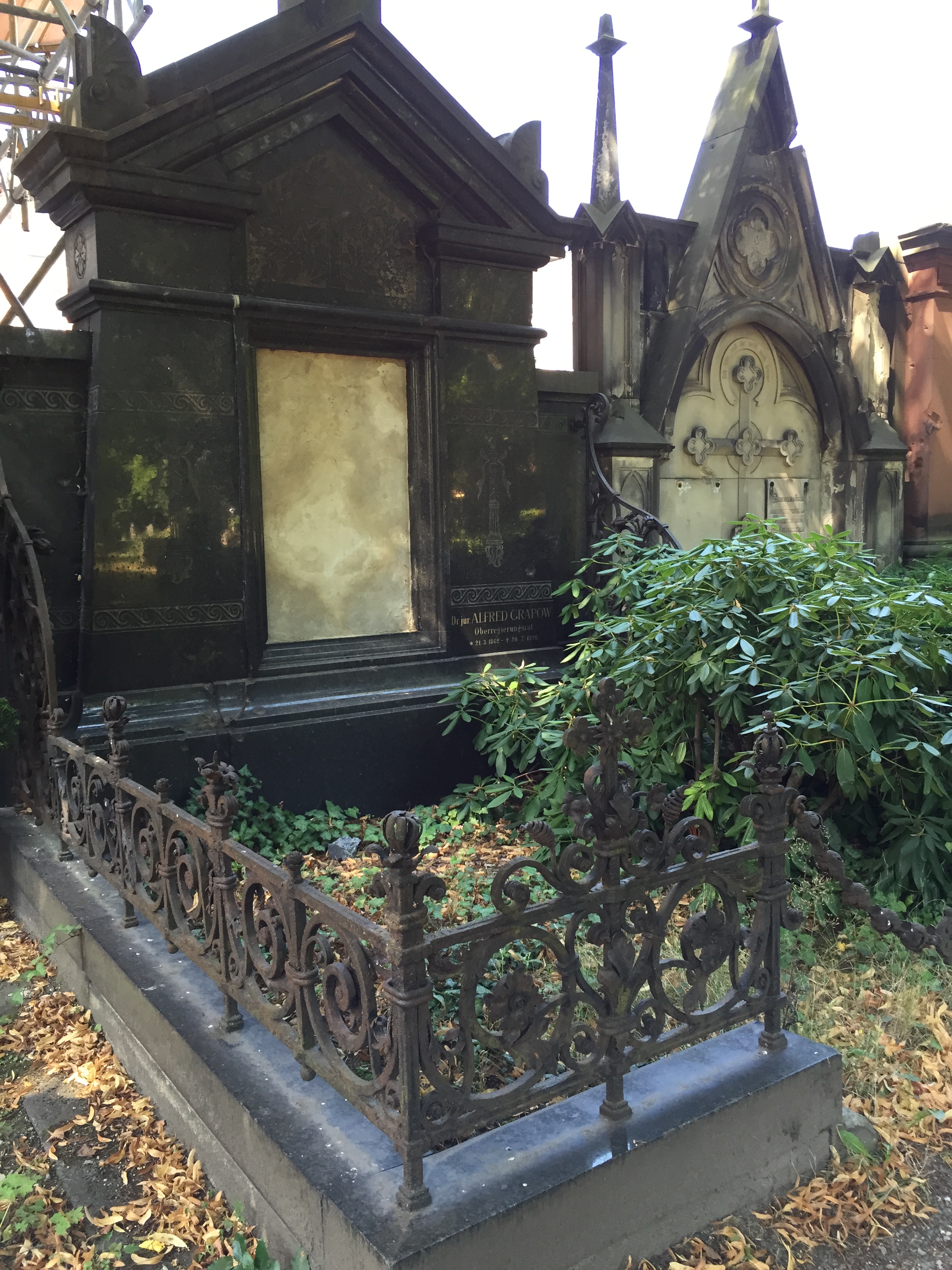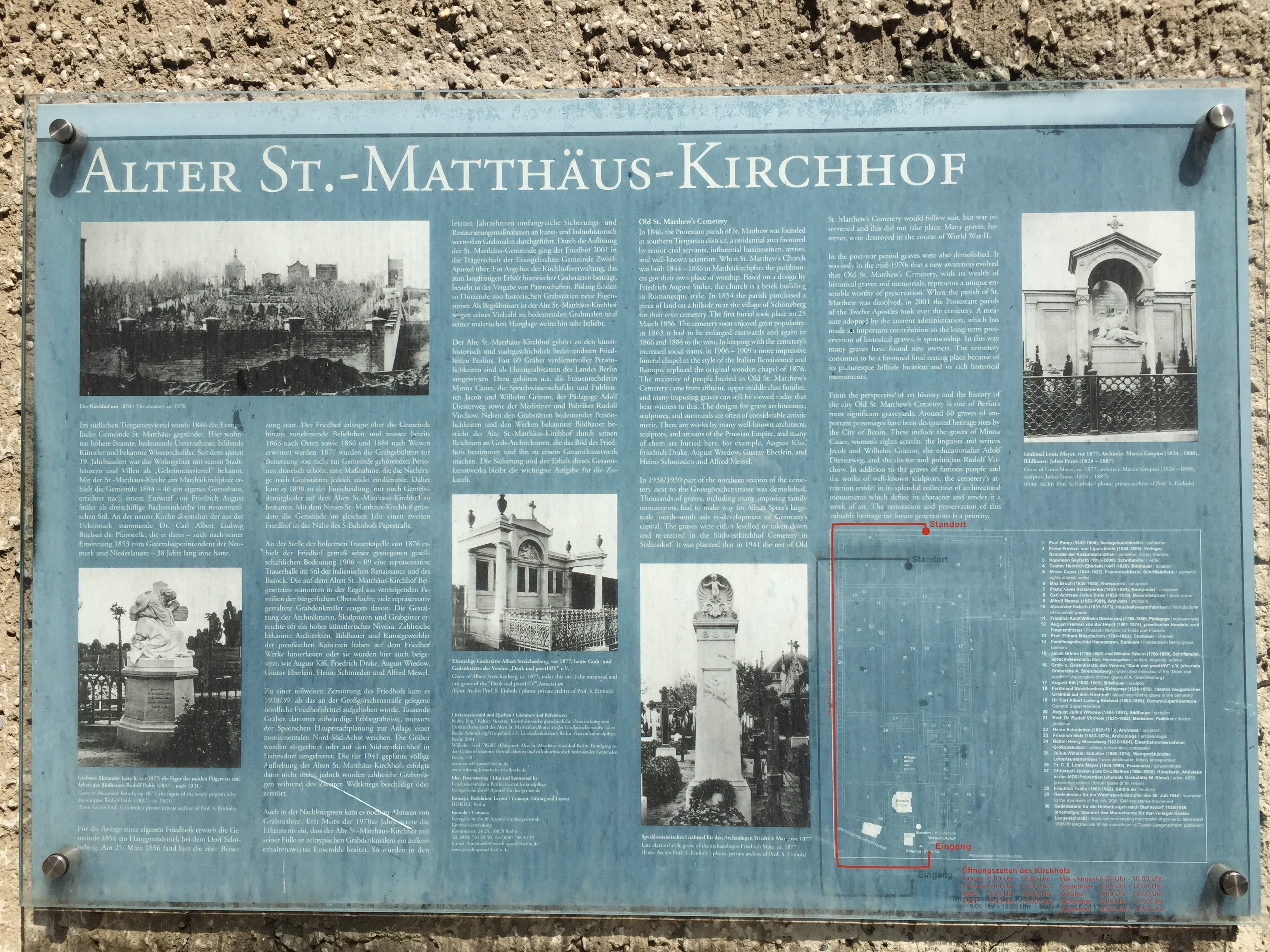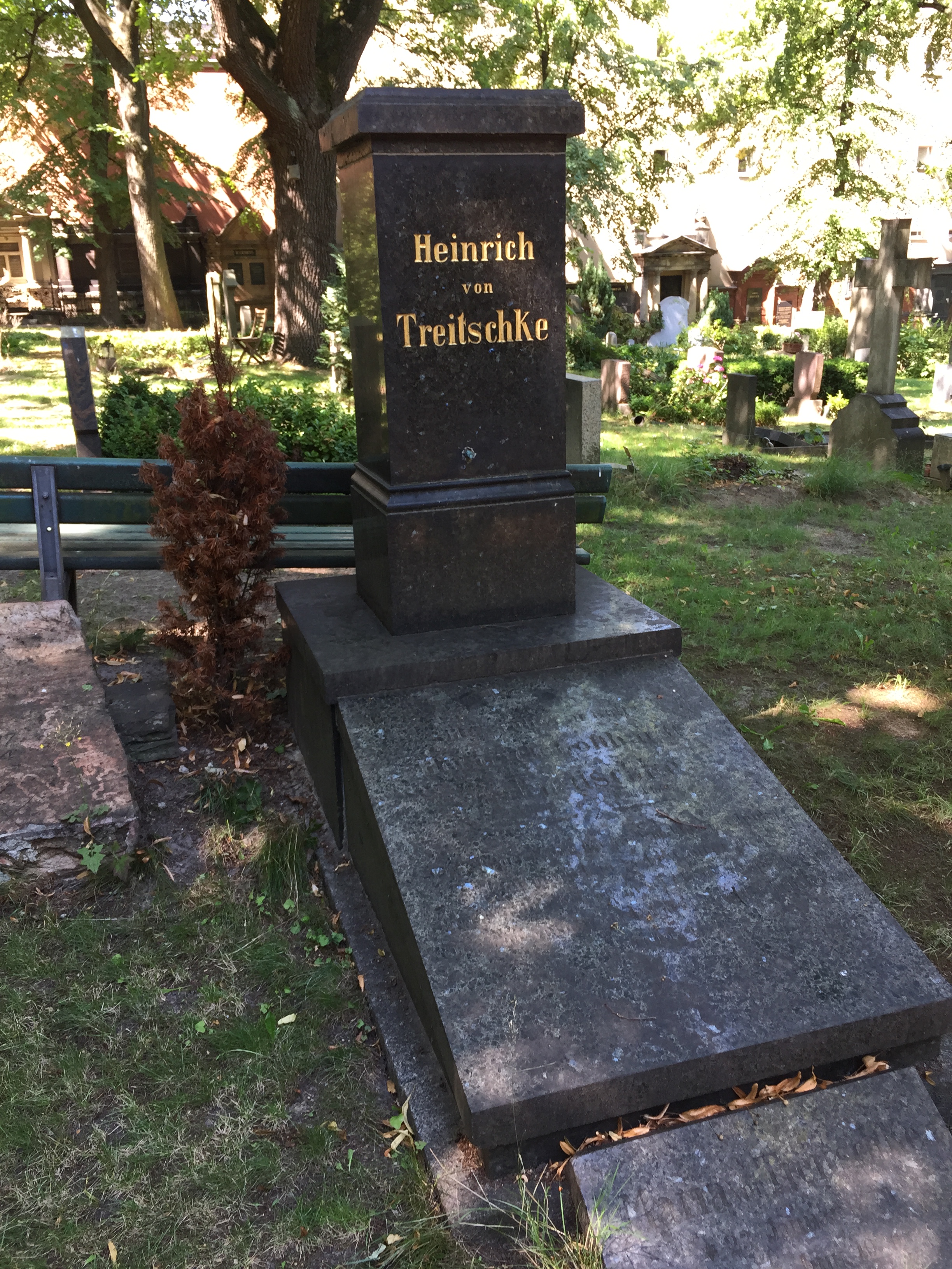 Bei der Zwischenstation auf dem Friedhof habe ich mich an die #gruftwandeln-Aktionen erinnert, die man auf Twitter unter dem vorgenannten Hashtag und auch auf dem Blog Kulturfritzen gelegentlich verfolgen kann. Und dann bin ich eben ein wenig umhergeschlendert. Der Friedhof hat, wie man bei Wikipedia nachlesen kann, eine wechselvolle Geschichte hinter sich. Daß er mal den besseren Ständen zur letzten Ruhestätte diente, sieht man ihm heute noch ebenso an wie die Tatsache, daß es einmal zu einem Eingriff gekommen sein muß. Es waren die Nationalsozialisten, die für ihre Reichshauptstadt Germania Platz brauchten und Umbettungen vornahmen. Heute gibt es Abteilungen für sogenannte Sternenkinder, also Tot- und Fehlgeburten sowie wenige Tage nach der Geburt gestorbene Babys. Einige Grabstätten dienen auch der Erinnerungen an Menschen, die an HIV/Aids gestorben sind.