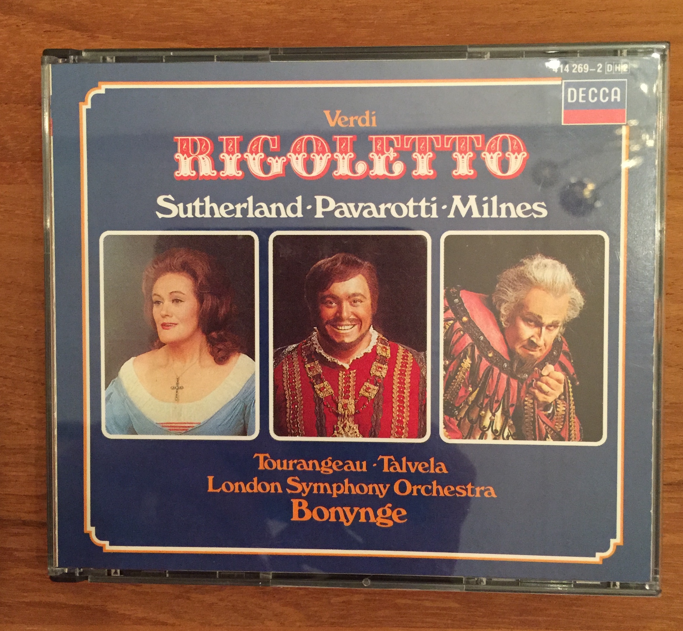 Damals, seit den 1950er Jahren, produzierten die großen Plattengesellschaften – EMI, DECCA, RCA, Deutsche Grammophon, Cetra u.a. – oft in Exklusivzusammenarbeit mit bestimmten Dirigenten und Sängern systematisch Operngesamtaufnahmen, um das Repertoire vorzulegen und um den Künstlern diese Form der Klangbühne zu bieten. Die neue digitale Aufnahmetechnik führte zu dem Schub an Neuaufnahmen, aber auch zur Digitalisierung der bereits vorliegenden Einspielungen.Joan Sutherland, die australische Sopranistin, hatte sich zur Spezialistin für die Musik des Belcanto entwickelt. Sie gehörte, wie etwa Montserrat Caballé und Marylin Horne, zu den Sängerinnen, die durch die Türen schritten, die Maria Callas geöffnet hatte. Es war dann überwiegend Schluß damit, die Musik von Bellini, Donizetti und des jungen Verdi im Stil des Verismo zu singen. In ihrem Ehemann Richard Bonynge fand sie den Dirigenten, der kontinuierlich die entsprechenden Produktionen betreute, so auch die hier interessierende Einspielung des Rigoletto.