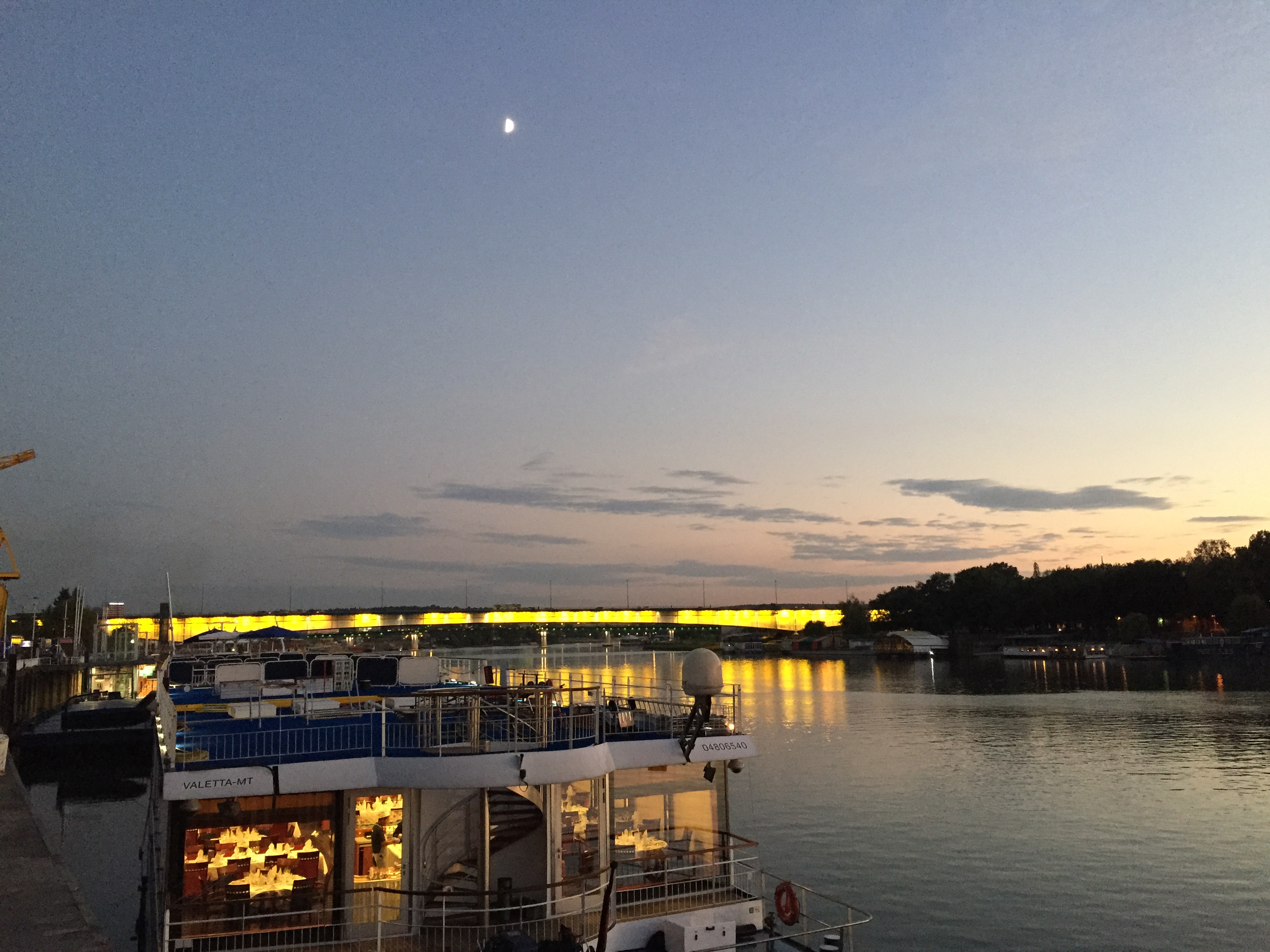 Das Abendessen wird in einem Restaurant am Ufer der Save eingenommen, das vom Stil her an New York erinnert und hier gerade als der letzte Schrei gilt.