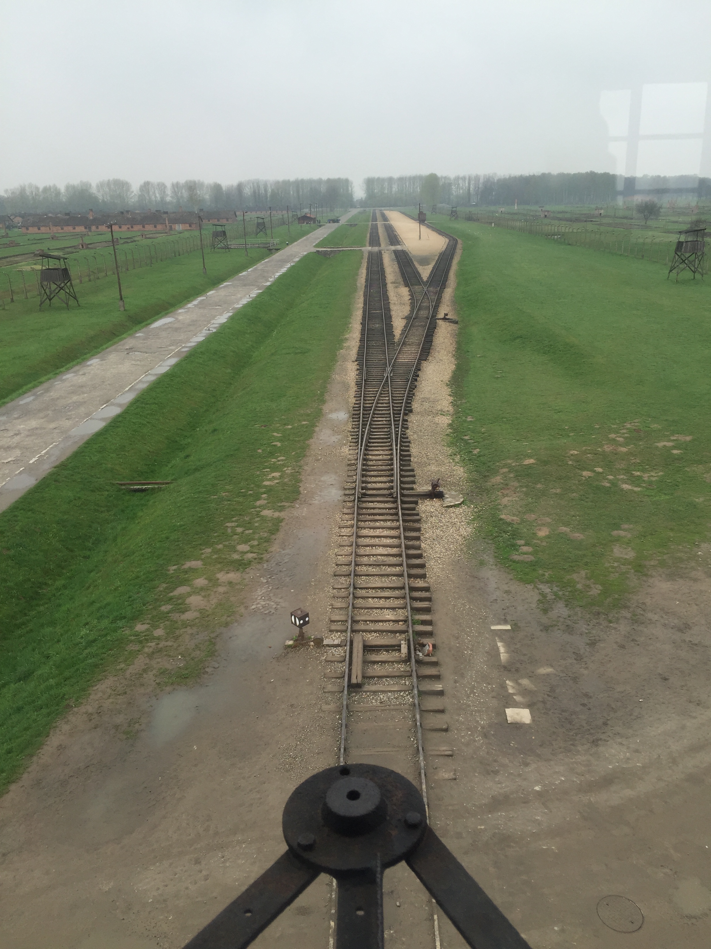 Auschwitz-Birkenau: Blick aus dem Hauptwachturm auf die Rampe