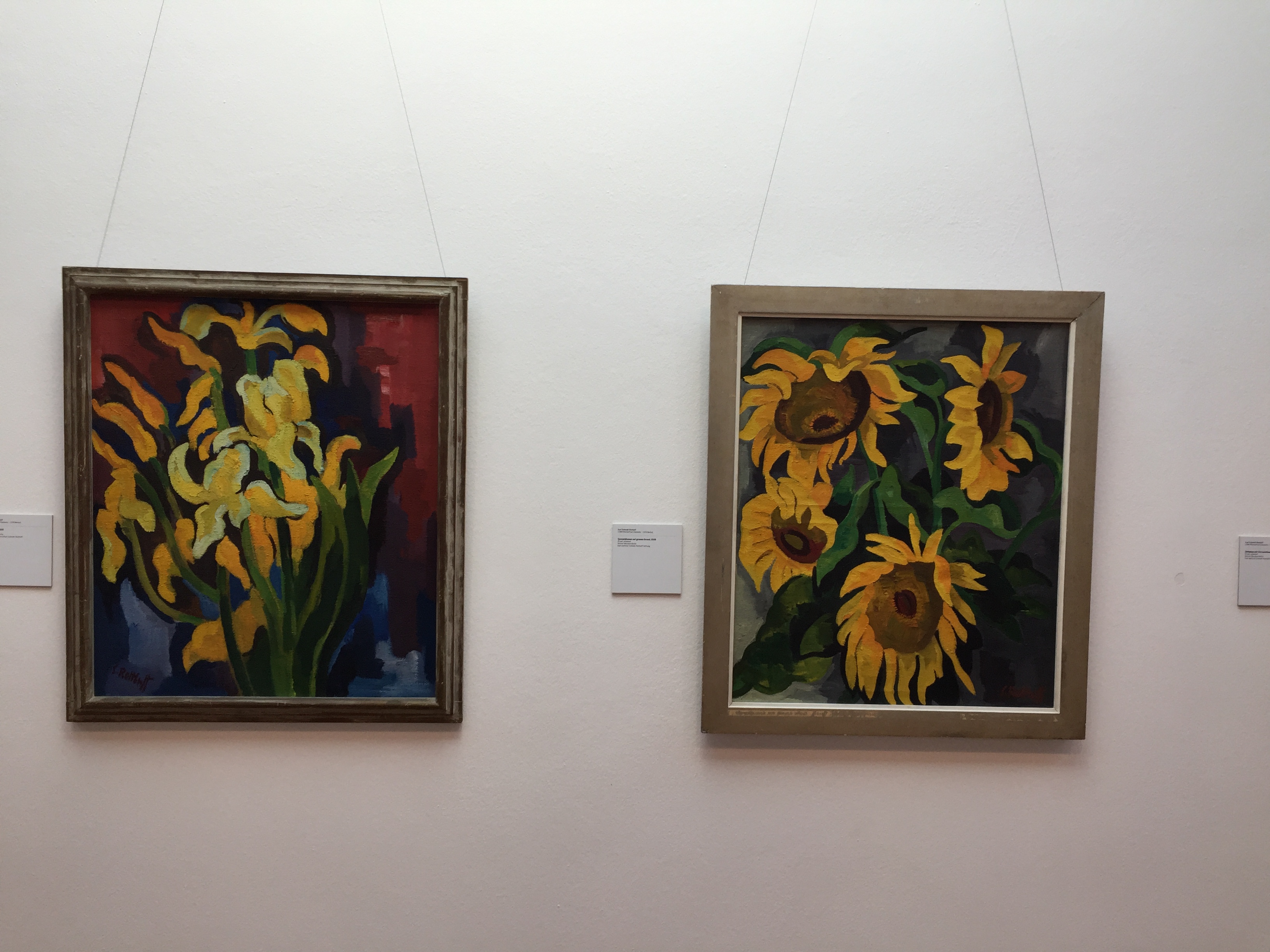 rechts: Karl Schmitt-Rottluff, Sonnenblumen auf grauem Grund, 1928 | Foto: nw2017